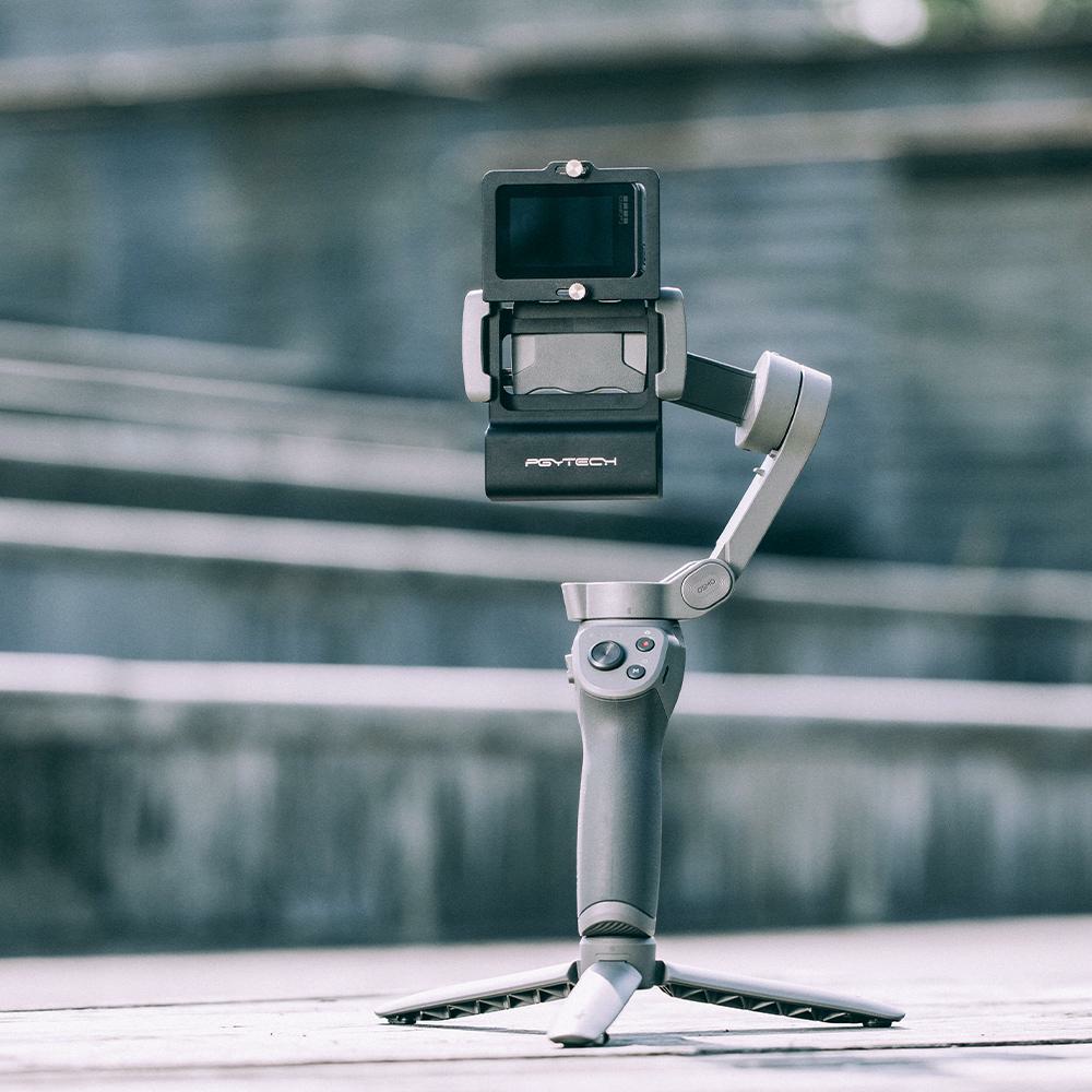 Адаптер PGYTECH Action Camera Adapter+ for Mobile Gimbal совместим с различными стабилизаторами: Osmo Mobile 2, Osmo Mobile 3. Устанавливается за считанные секунды. Структура балансировки веса обеспечивает горизонтальное положение камеры в любых условиях